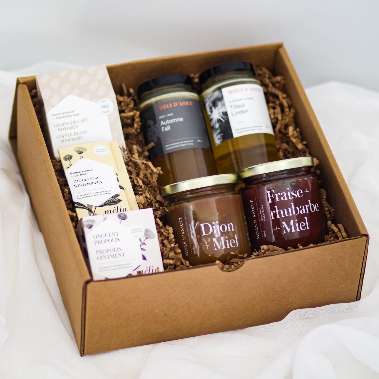 Concoctées avec nos produits chouchous de la gamme Mélia et Miels d’Anicet, voici quelques idées d’assortiments de produits locaux qui reflètent notre territoire, de belles valeurs entrepreneuriales et qui bourdonnent de bienfaits !