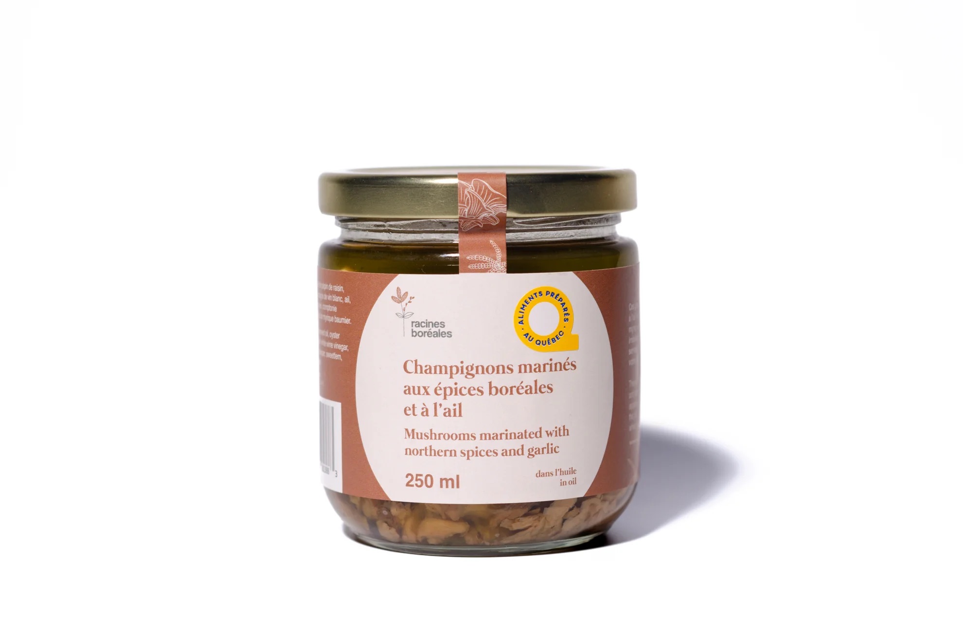 Ces champignons marinés sont préparés de façon artisanale au Québec, avec plus de 50% d’ingrédients issus du terroir canadien.