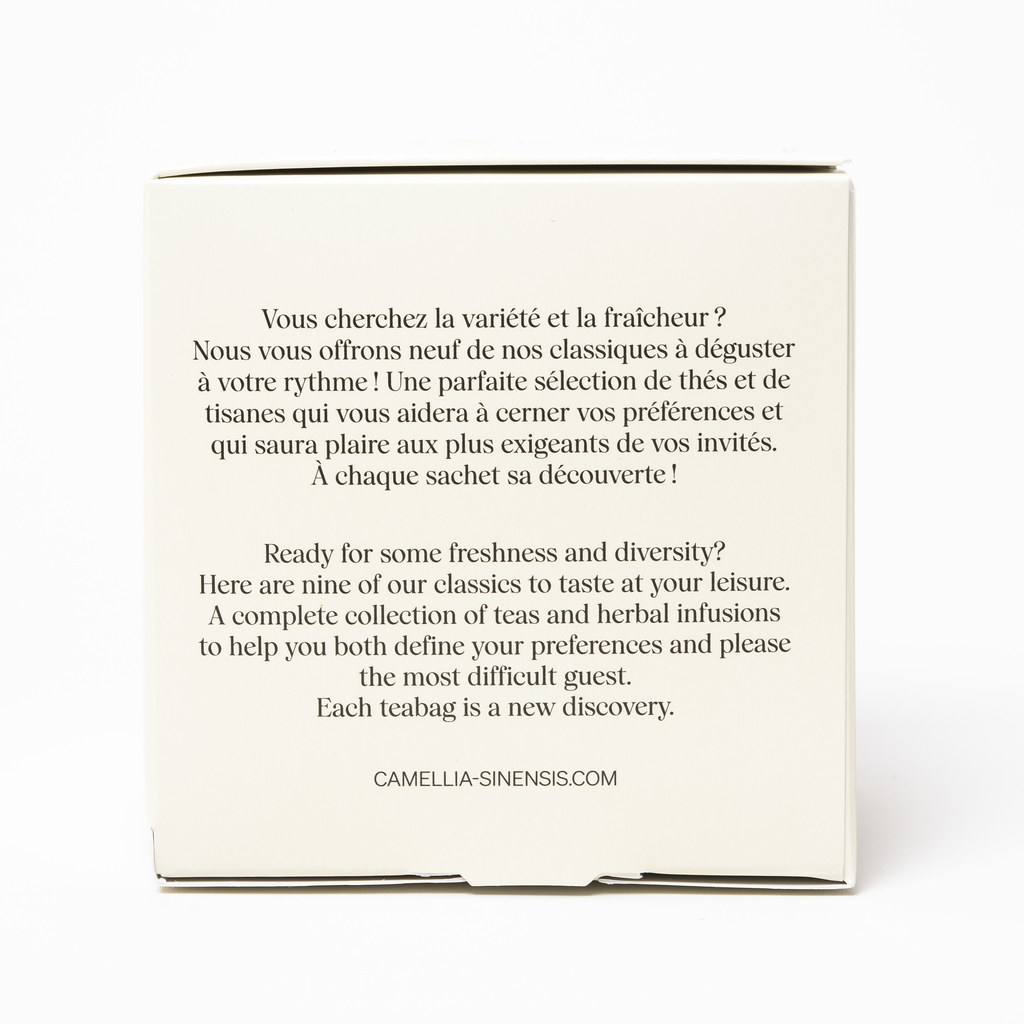 Parfaite sélection de thés Camellia Sinensis, thés parfumés et tisanes qui vous aidera à cerner vos préférences et qui saura plaire aux plus exigeants de vos invités. À chaque sachet sa découverte!