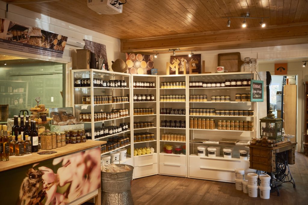 Cependant, il est possible de passer de beaux moments à la miellerie pour découvrir les jardins, observer les abeilles dans la ruche vitrée et contempler les ruches parsemées dans un magnifique décor sauvage et mellifère. Nous avons également une jolie boutique à visiter dans laquelle on retrouve l’ensemble des produits fabriqués à la ferme de même que de beaux produits artisanaux du Québec.